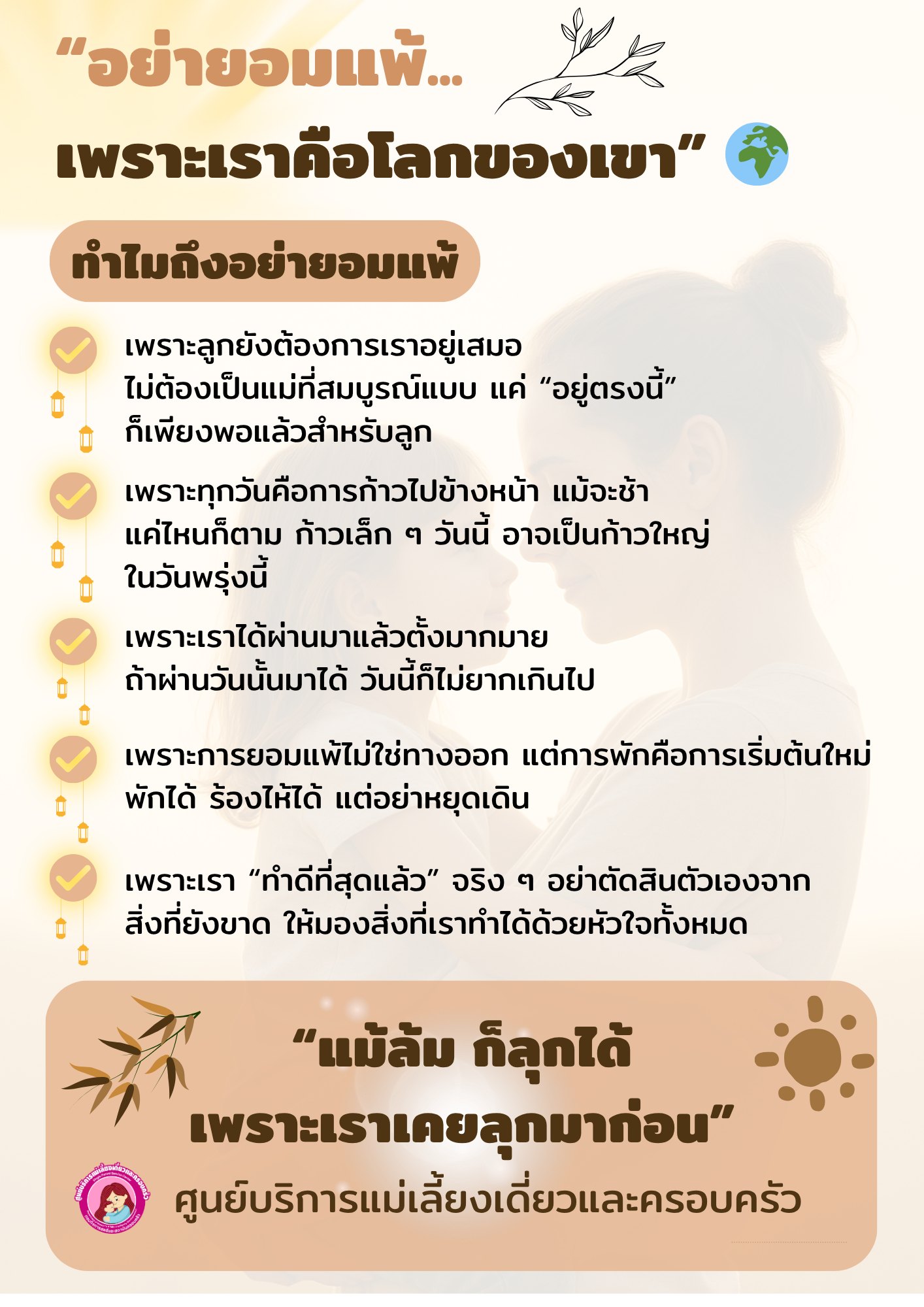 แม่ล้มได้ แต่ต้องลุก เพราะโลกของเรายังมีคนตัวเล็ก ๆ ที่รออยู่