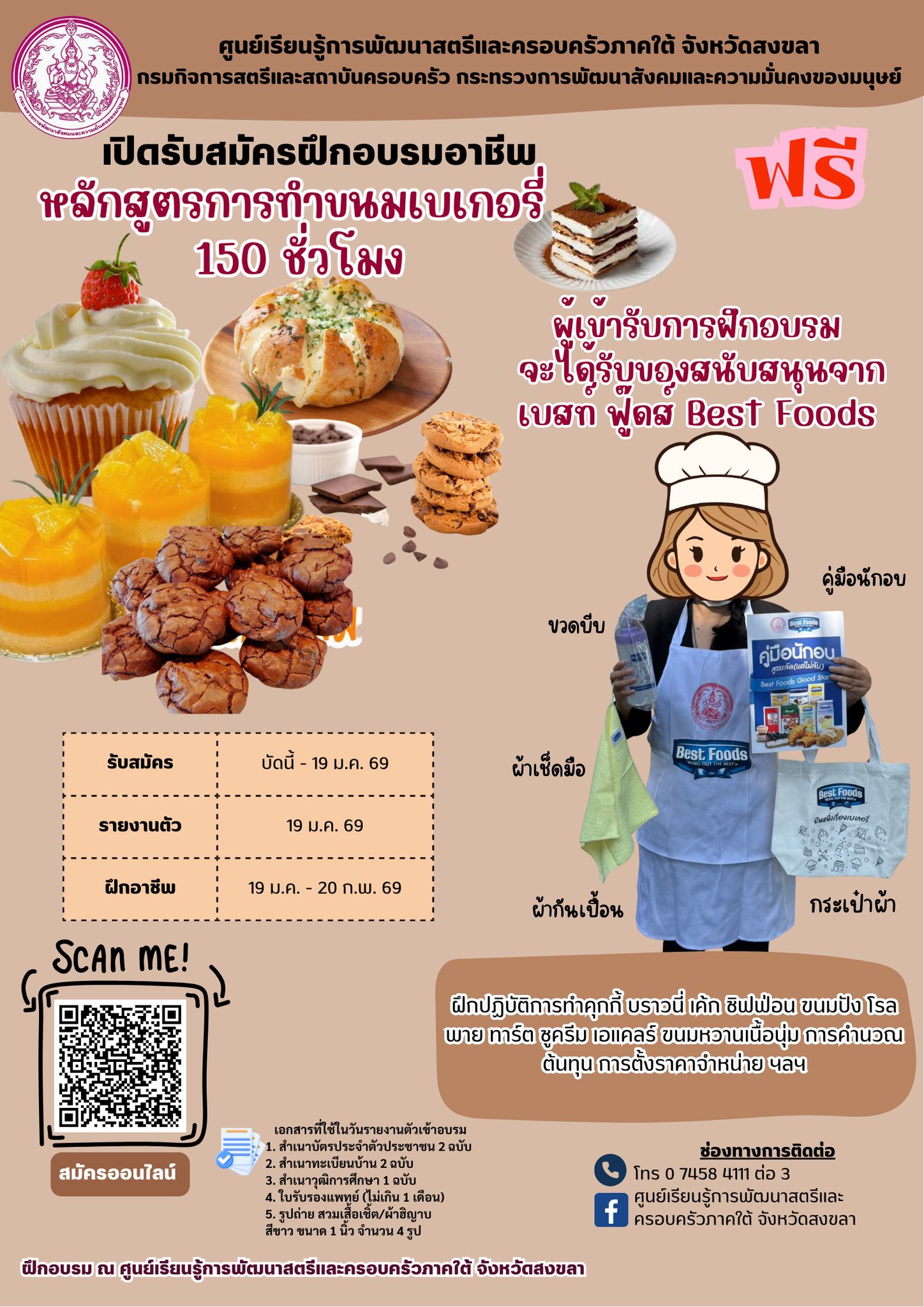 หลักสูตรการทำขนมเบเกอรี่ และหลักสูตรบาริสต้า