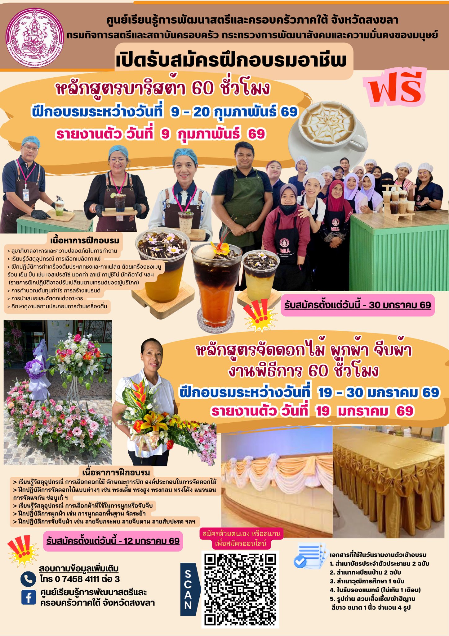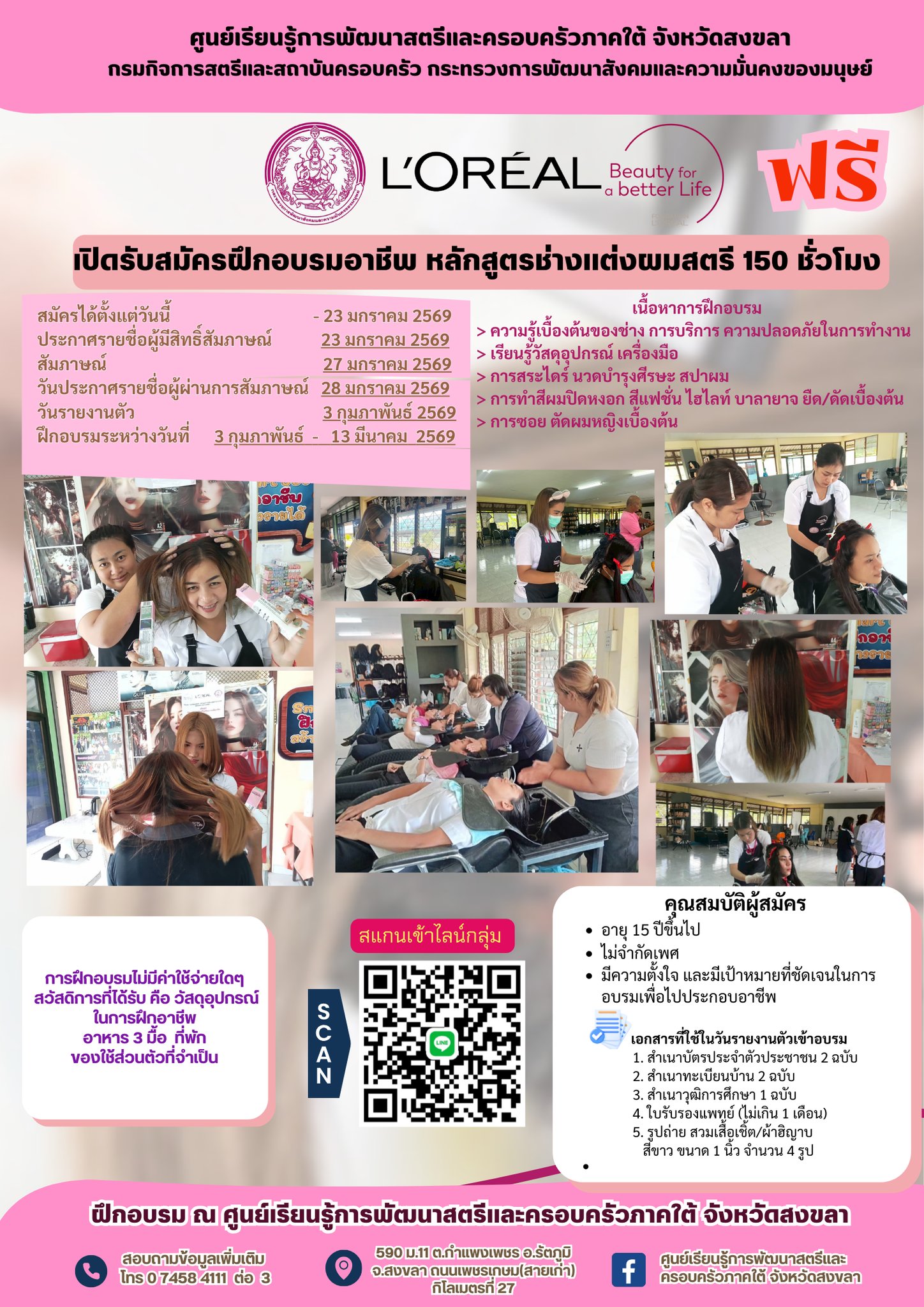 สำหรับหลักสูตรช่างแต่งผมสตรี สมัครด้วยการ สแกนเข้า Line กลุ่ม ตาม QR Code ที่แนบในประกาศ
