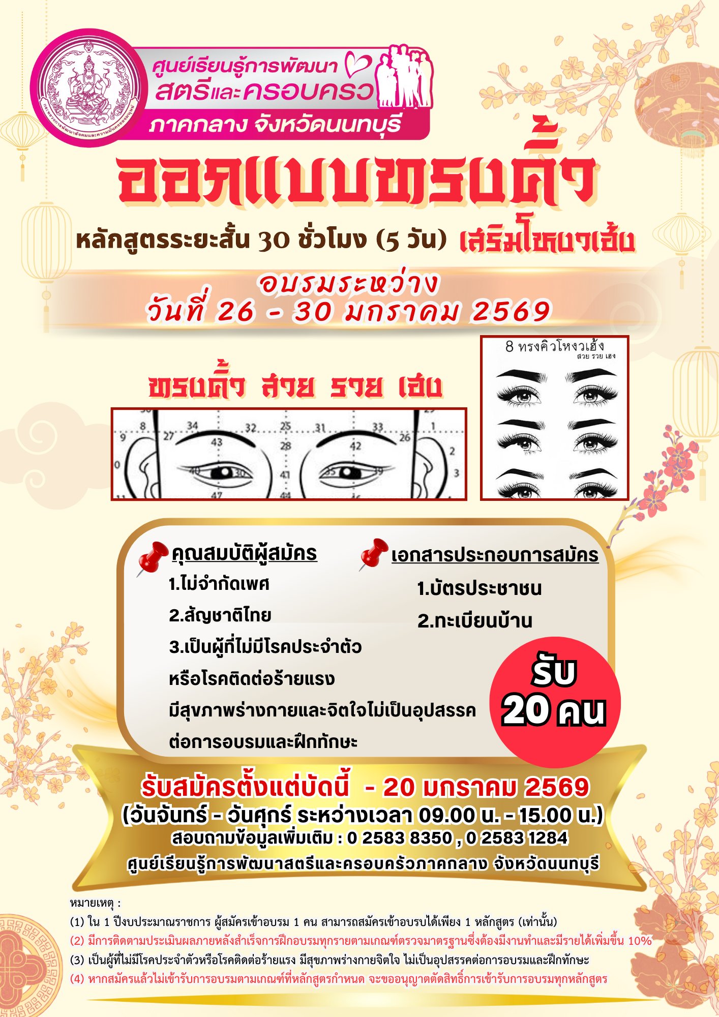 เปิดรับสมัครหลักสูตรระยะสั้น 5 วัน รุ่นที่ 2 ประจำปีงบประมาณ 2569 (ออกแบบทรงคิ้วเสริมโหงวเฮ้ง) จำนวน 20 คน
