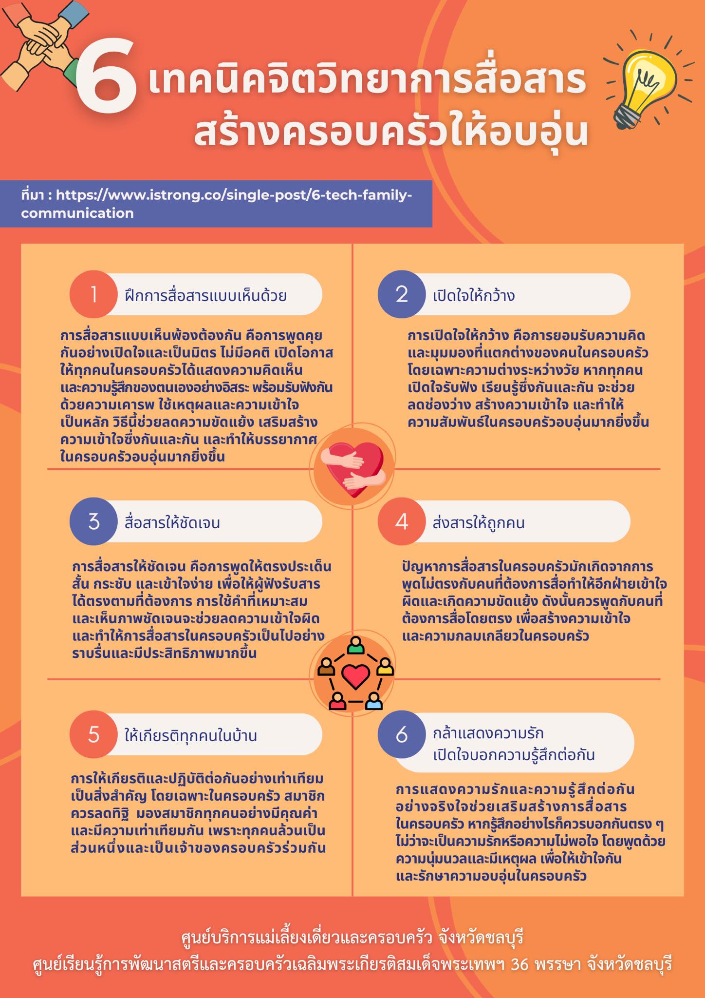 หัวข้อนี้จะพาคุณพ่อคุณแม่เรียนรู้วิธีการแสดงความรัก และความรู้สึกอย่างจริงใจ ไม่ว่าจะเป็นความห่วงใยหรือความไม่สบายใจ คือกุญแจสำคัญของการสื่อสารที่ดี เมื่อเรากล้าพูด กล้าฟัง และใส่ใจกันมากขึ้นความเข้าใจและความอบอุ่นในครอบครัวก็จะเกิดขึ้นได้ อย่างแท้จริง