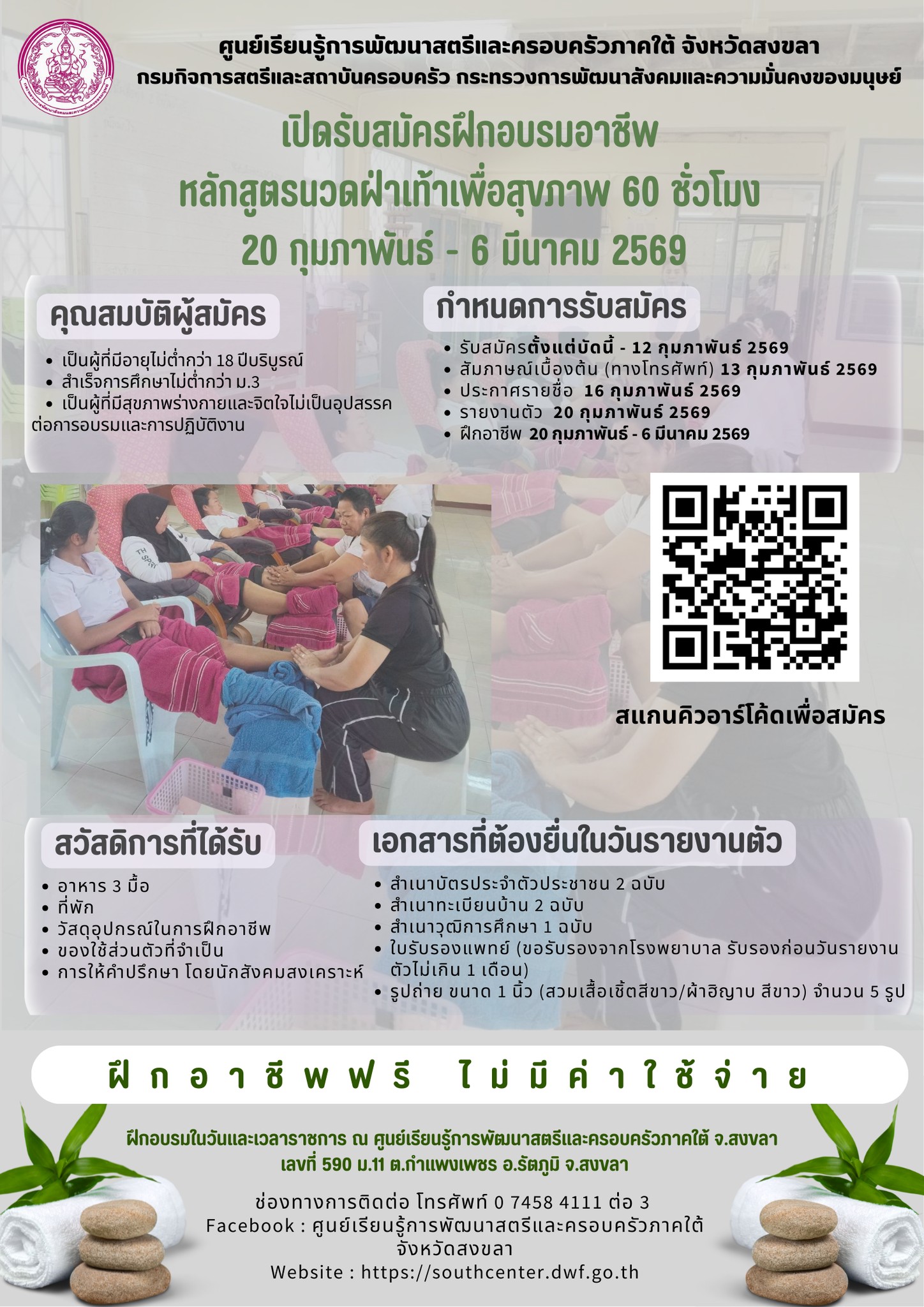 ท่านใดอยู่ใกล้สามารถเดินทางมาสมัครได้ที่ #ศูนย์เรียนรู้การพัฒนาสตรีและครอบครัวภาคใต้จังหวัดสงขลา