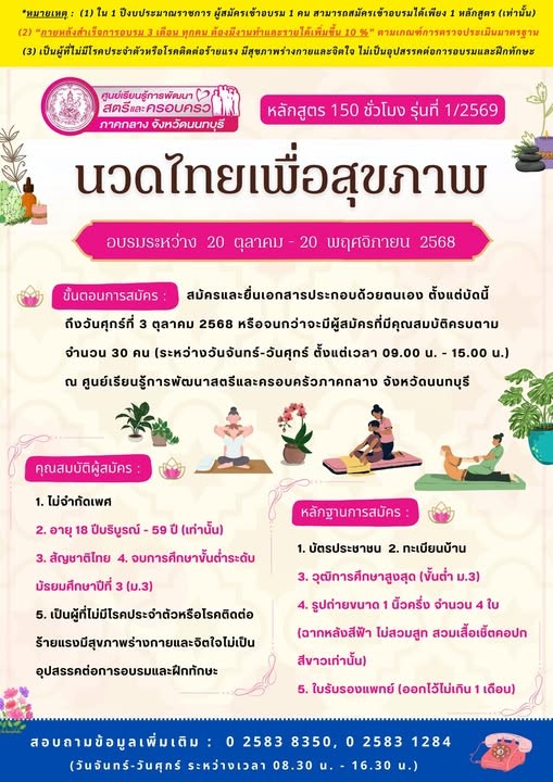 เปิดรับสมัครหลักสูตร 150 ชั่วโมง รุ่นที่ 1 ประจำปีงบประมาณ 2569 (นวดไทยเพื่อสุขภาพ) จำนวน 30 คน