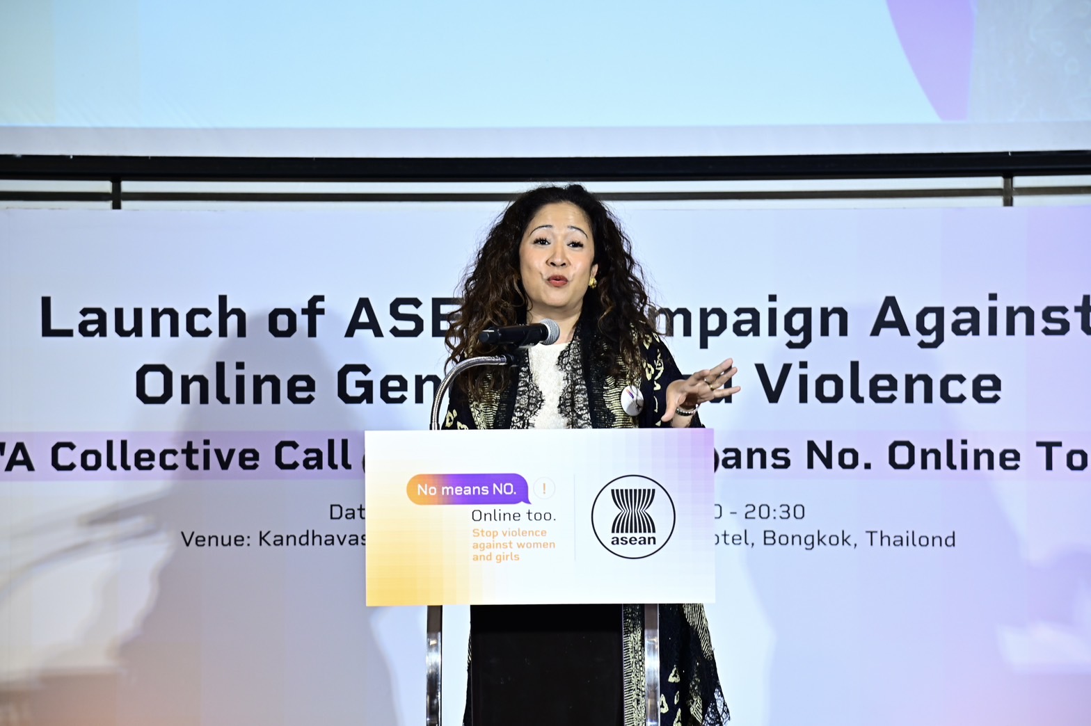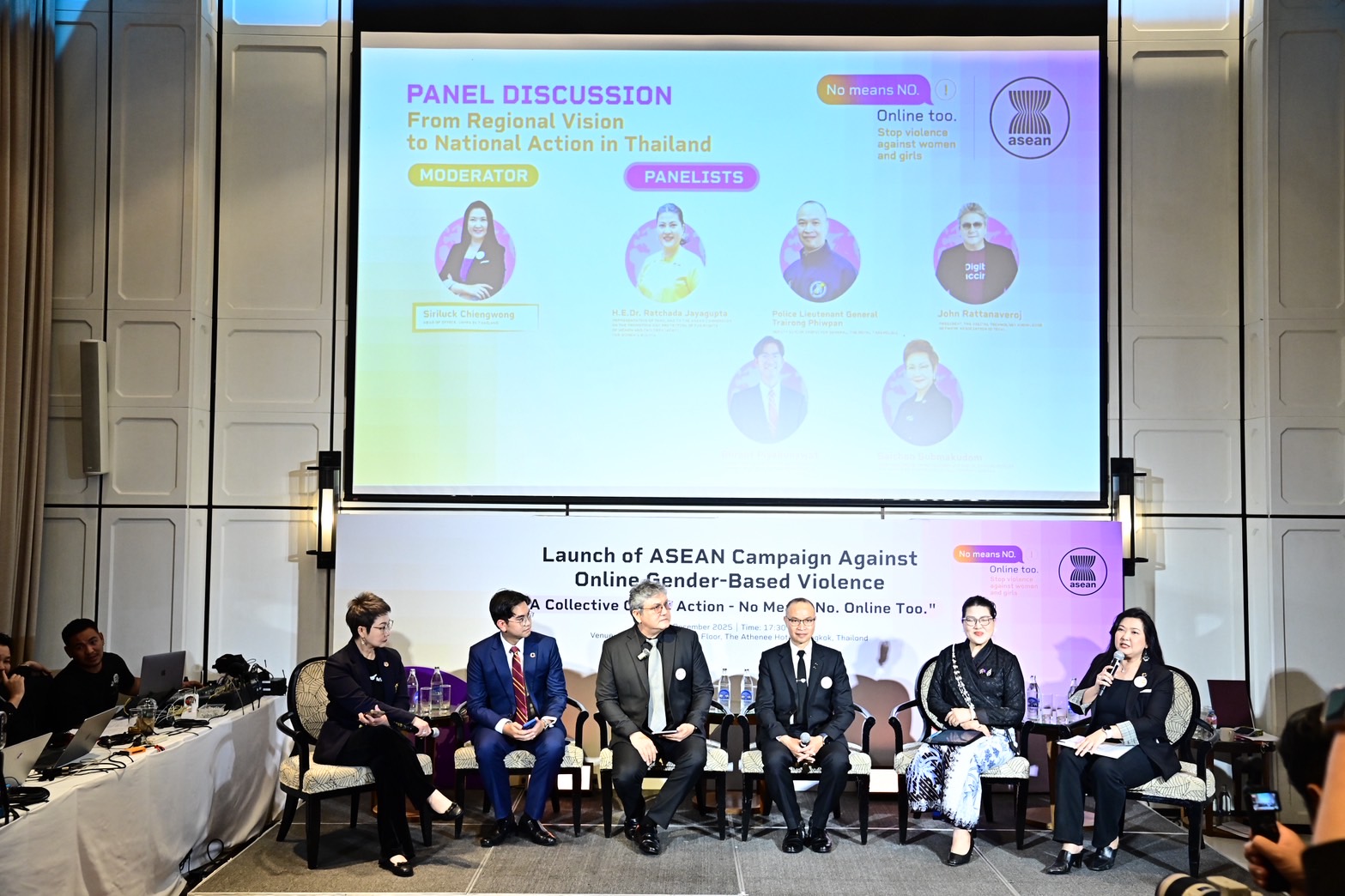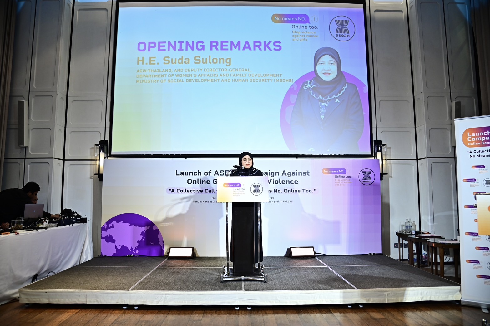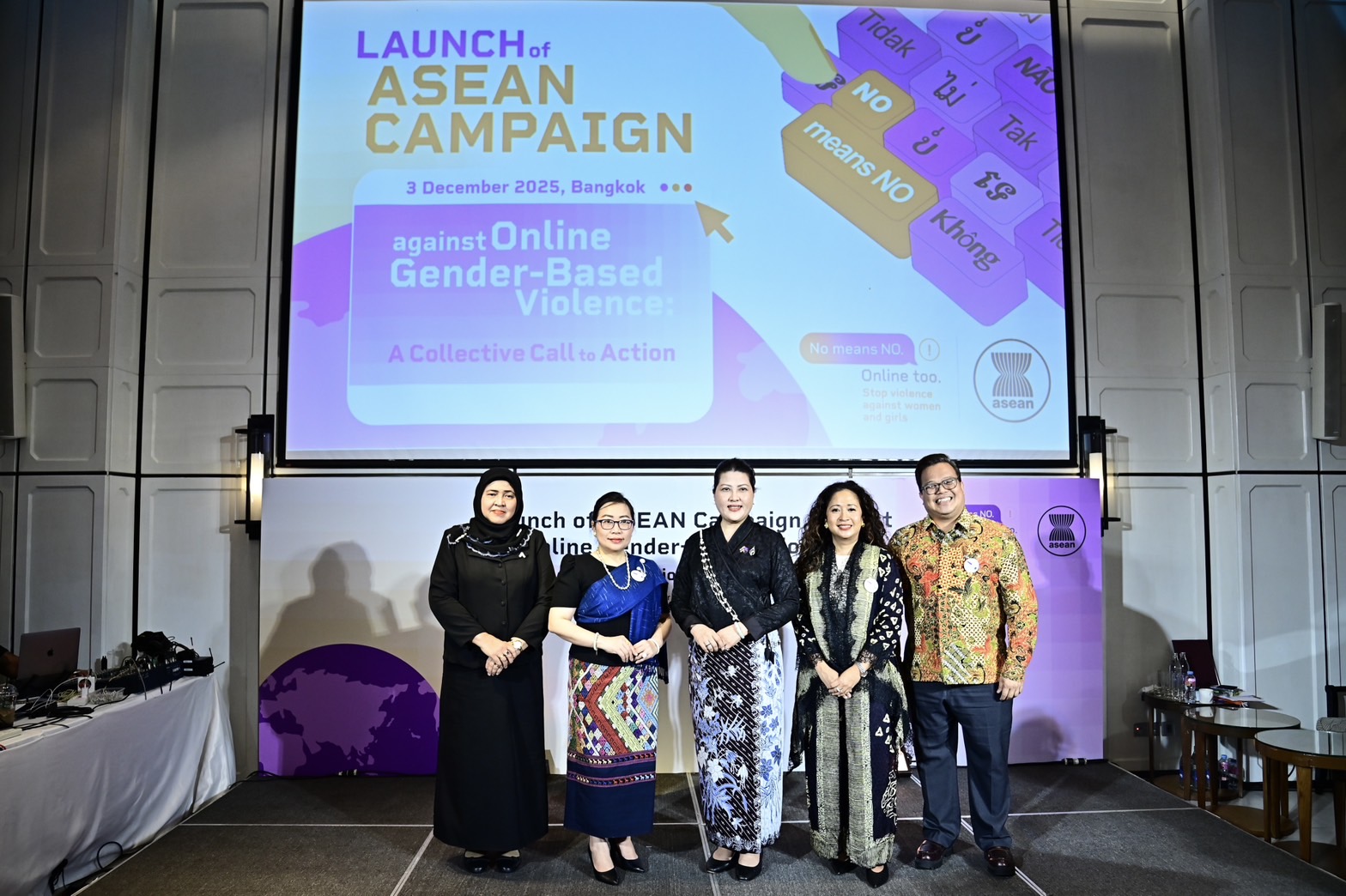 วันพุธที่ 3 ธันวาคม 2568 เวลา 18.00 น. ณ โรงแรมดิ แอทธินี โฮเทล กรุงเทพฯ นางจตุพร โรจนพานิช อธิบดีกรมกิจการสตรีและสถาบันครอบครัว มอบหมายให้นางสุดา สุหลง รองอธิบดีกรมกิจการสตรีและสถาบันครอบครัว ในฐานะคณะกรรมการอาเซียนด้านสตรี (ACW–Thailand) ร่วมกล่าวในพิธีเปิดแคมเปญการรณรงค์อาเซียนเพื่อต่อต้านความรุนแรงทางเพศในโลกออนไลน์ ภายใต้การประชุมปรึกษาหารือระดับภูมิภาคว่าด้วยการจัดทำข้อเสนอแนะแนวทางของอาเซียนว่าด้วยการบูรณาการประเด็นความพิการในนโยบายและโครงการเพื่อป้องกันและขจัดความรุนแรงต่อผู้หญิงและเด็กหญิง แผนปฏิบัติการระดับภูมิภาคของอาเซียนว่าด้วยการขจัดความรุนแรงต่อผู้หญิง และหมวดความร่วมมือระหว่างประเด็นความรุนแรงต่อผู้หญิงกับความรุนแรงต่อเด็ก จัดขึ้นโดยความร่วมมือจากผู้แทนประเทศไทยประจำคณะกรรมาธิการอาเซียนว่าด้วยการส่งเสริมและคุ้มครองสิทธิสตรีและเด็ก (ACWC) ด้านสิทธิสตรี เจ้าหน้าที่อาวุโสด้านสวัสดิการสังคมและการพัฒนา (SOMSWD) UN Women, UNFPA และ UNICEF โดยมีวัตถุประสงค์เพื่อสร้างความตระหนักเกี่ยวกับความปลอดภัยทางเพศออนไลน์ ซึ่งเป็นส่วนหนึ่งของ ความเสมอภาคทางเพศ ผู้หญิงและเด็กหญิงทุกคนในอาเซียนสามารถใช้พื้นที่ดิจิทัลได้อย่างมีศักดิ์ศรี มั่นใจ และปราศจากอันตราย กลุ่มเป้าหมายประกอบด้วยตัวแทนจากประเทศสมาชิกอาเซียน องค์กรภาคประชาสังคม หน่วยงานสหประชาชาติ หน่วยงานภาครัฐ และผู้เชี่ยวชาญ