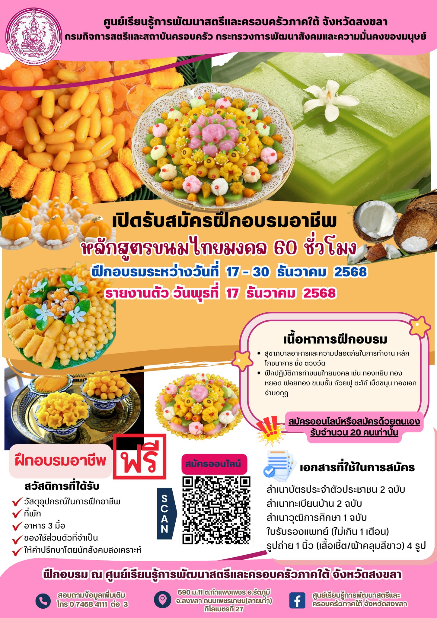 ท่านใดอยู่ใกล้สามารถเดินทางมาสมัครได้ที่ #ศูนย์เรียนรู้การพัฒนาสตรีและครอบครัวภาคใต้จังหวัดสงขลา