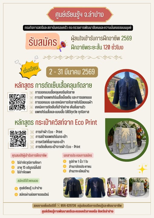 มาแล้วจร้า…มาสมัครเรียนกัน..สร้างงาน สร้างอาชีพ มีรายได้ในภาวะเศรษฐกิจแบบนี้ #ศูนย์เรียนรู้การพัฒนาสตรีภาคเหนือจังหวัดลำปาง![]()