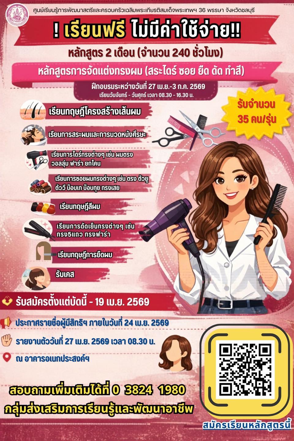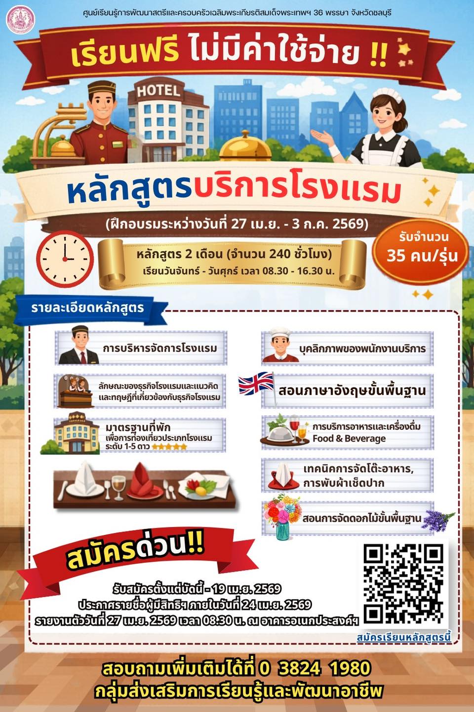 รายงานตัววันที่ 27 เม.ย. 2569 เวลา 08.30 น. ณ อาคารอเนกประสงค์ฯ ศูนย์เรียนรู้การพัฒนาสตรีและครอบครัวฯ จังหวัดชลบุรี