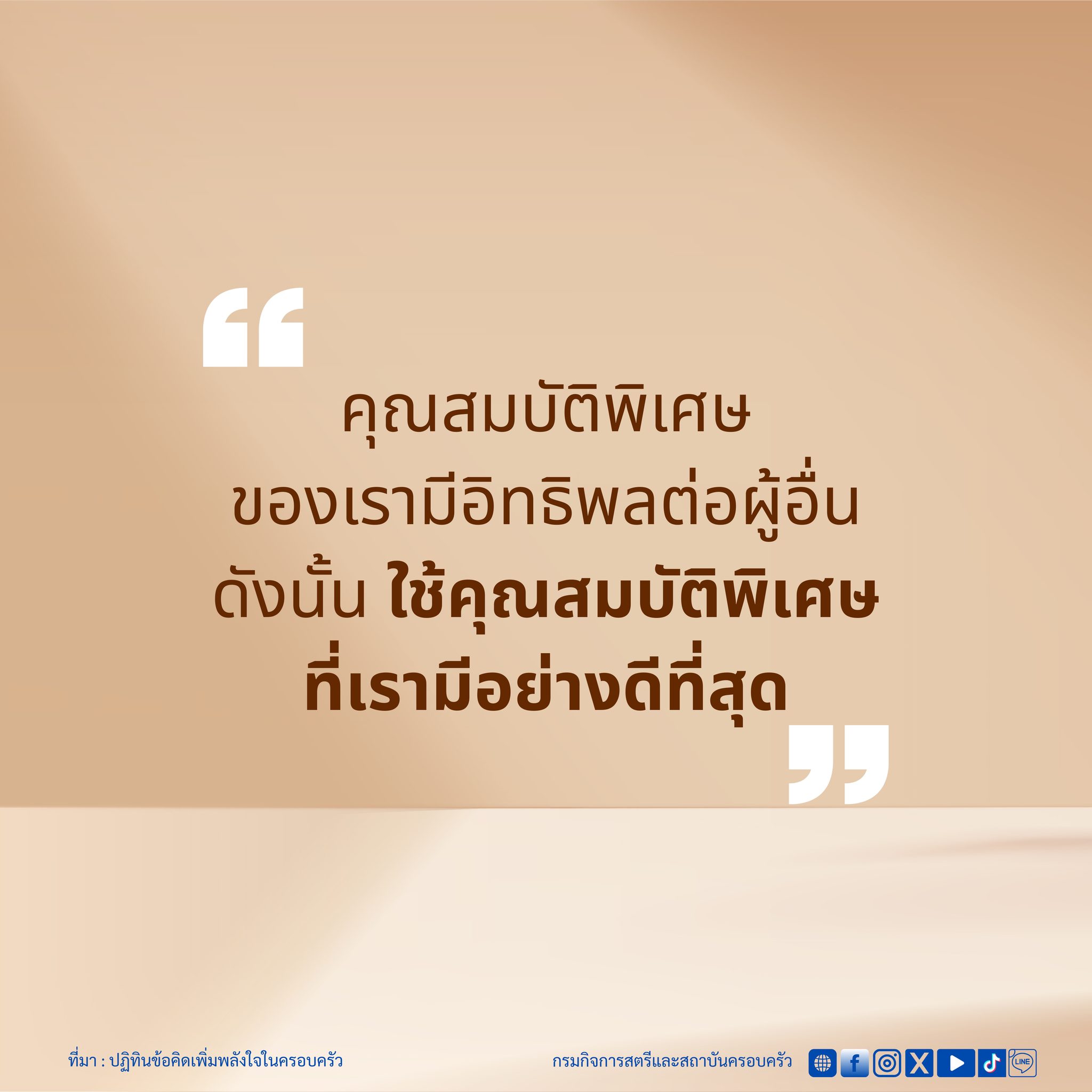 บัตรคำให้กำลังใจจาก สค. คุณสมบัติพิเศษของเรามีอิทธิพลต่อผู้อื่นดังนั้น ใช้คุณสมบัติพิเศษที่เรามีอย่างดีที่สุด