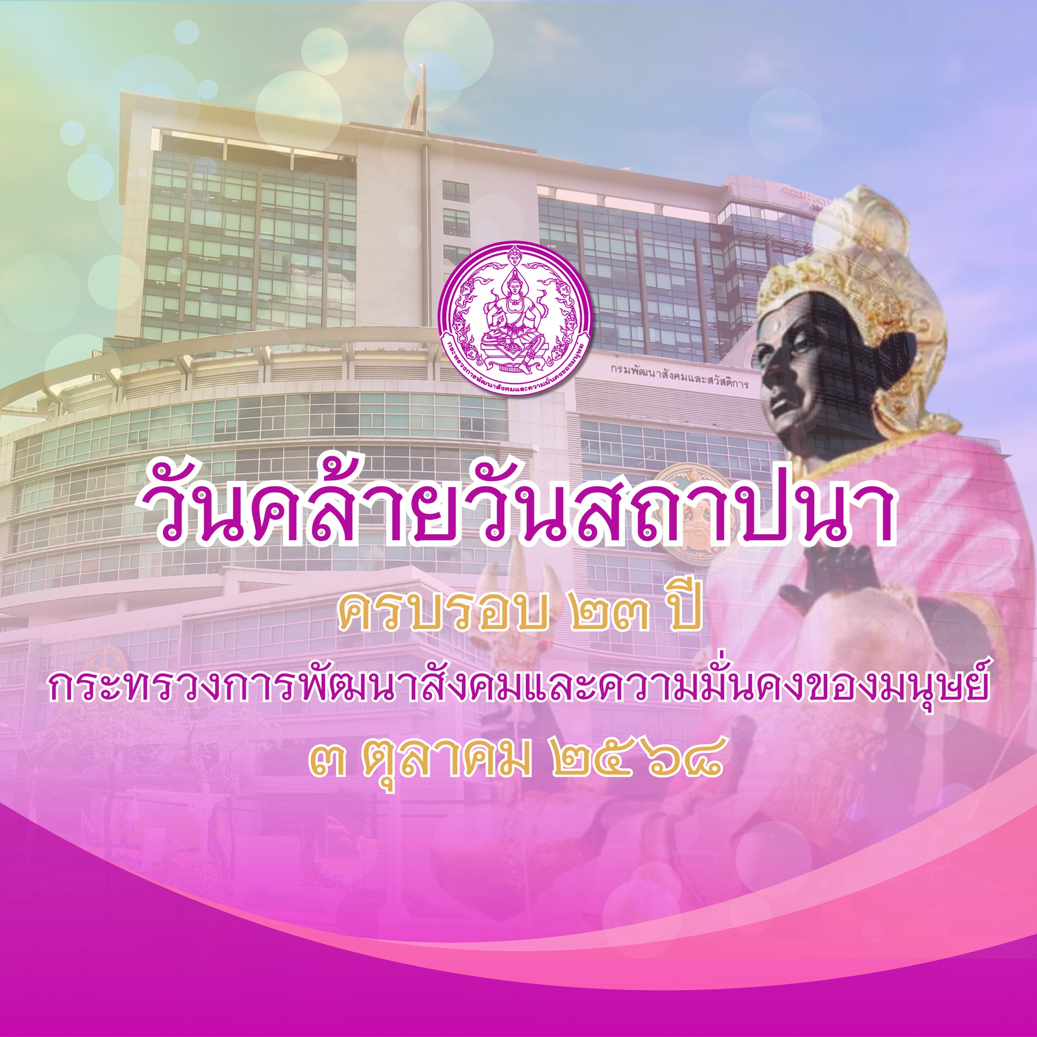 ๓ ตุลาคม ๒๕๖๘"วันคล้ายวันสถาปนา"กระทรวงการพัฒนาสังคมและความมั่นคงของมนุษย์ ครบรอบ ๒๓ ปี