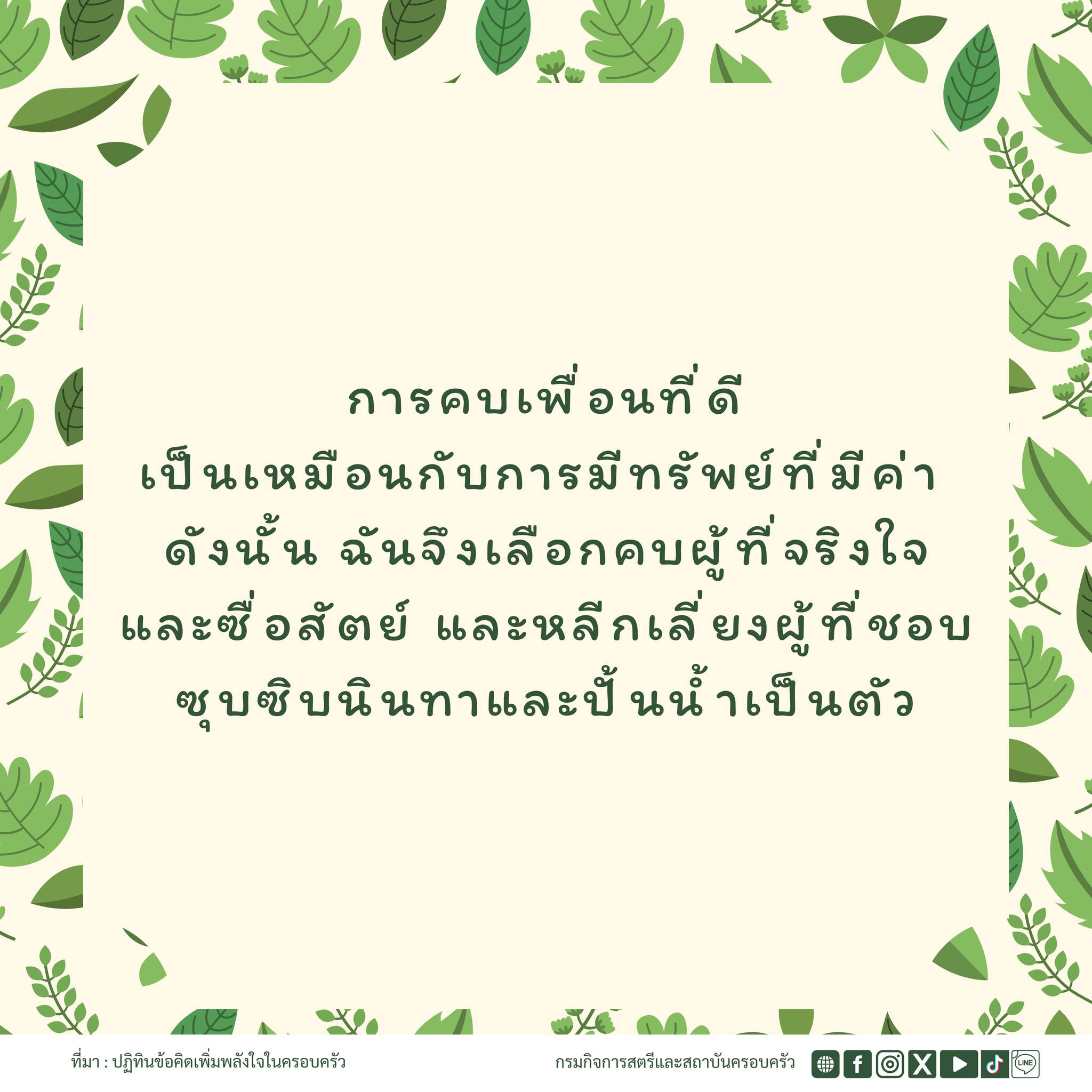 และซื่อสัตย์ และหลีกเลี่ยงผู้ที่ชอบซุบซิบนินทาและปั้นน้ำเป็นตัว