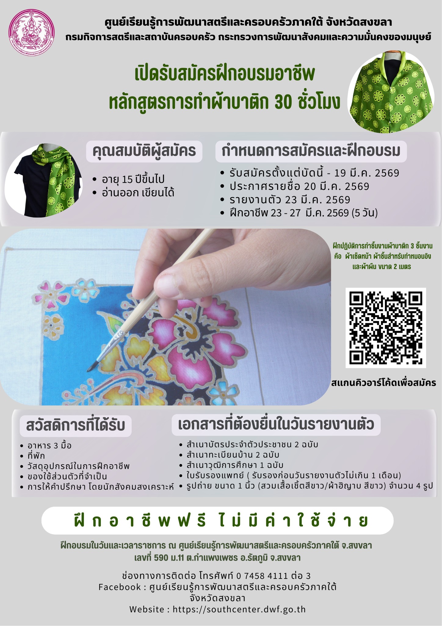 ท่านใดอยู่ใกล้สามารถเดินทางมาสมัครได้ที่ #ศูนย์เรียนรู้การพัฒนาสตรีและครอบครัวภาคใต้จังหวัดสงขลา