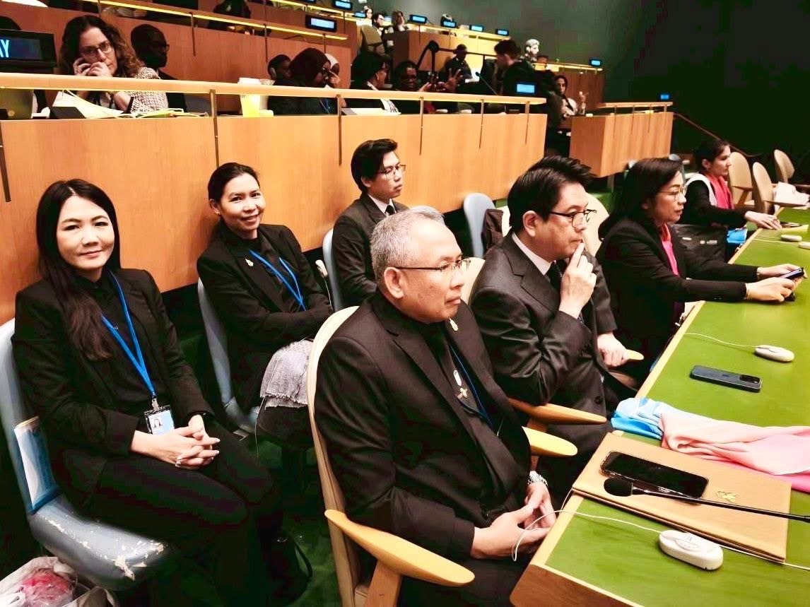 วันที่ 9 มี.ค.2569 เวลา 10.00 น. (ตามเวลาท้องถิ่น) ที่สำนักงานใหญ่สหประชาชาติ (UN) นครนิวยอร์ก สหรัฐอเมริกา นายอัครา พรหมเผ่า รัฐมนตรีว่าการกระทรวงการพัฒนาสังคมและความมั่นคงของมนุษย์มอบหมายให้ นายกันตพงศ์ รังษีสว่าง ปลัดกระทรวงการพัฒนาสังคมและความมั่นคงของมนุษย์ ในฐานะหัวหน้าคณะผู้แทนไทย และนางจตุพร โรจนพานิช อธิบดีกรมกิจการสตรีและสถาบันครอบครัว ในการนี้ นายเชิดชาย ใช้ไววิทย์ เอกอัครราชทูต ผู้แทนถาวรไทย ประจำสหประชาชาติ ณ นครนิวยอร์ก พร้อมด้วย นางสันทนี ดิษยบุตร ผู้อำนวยการสำนักงานยุทธศาสตร์กระบวนการยุติธรรม สถาบันนิติวัชร์ สำนักงานอัยการสูงสุด และคณะ ได้เข้าร่วมประชุมคณะกรรมาธิการว่าด้วยสถานภาพสตรี สมัยที่ 70 (Commission on the Status of Women: CSW70) ภายใต้หัวข้อหลัก “การสร้างหลักประกันและเสริมความเข้มแข็งในการเข้าถึงกระบวนการยุติธรรมสำหรับสตรีและเด็กหญิงทุกคน รวมถึงการส่งเสริมระบบกฎหมายที่ครอบคลุมและเป็นธรรม การขจัดกฎหมาย นโยบาย และแนวปฏิบัติที่เลือกปฏิบัติ และแก้ไขอุปสรรคเชิงโครงสร้าง” (Ensuring and strengthening access to justice for all women and girls, including by promoting inclusive and equitable legal systems, eliminating discriminatory laws, policies, and practices, and addressing structural barriers)